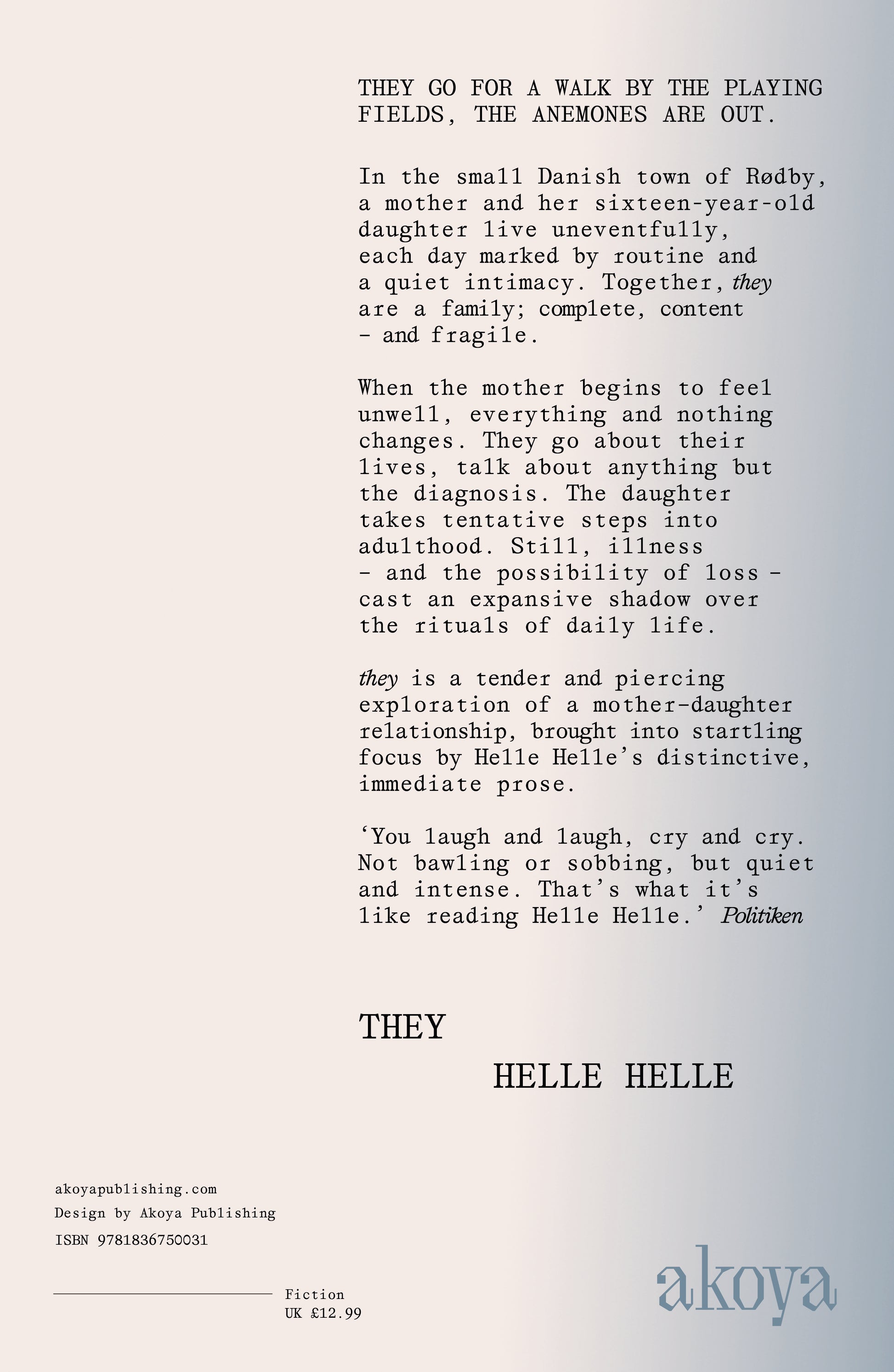 they is a tender and piercing exploration of a mother–daughter relationship, brought into startling focus by Helle Helle’s distinctive, immediate prose.